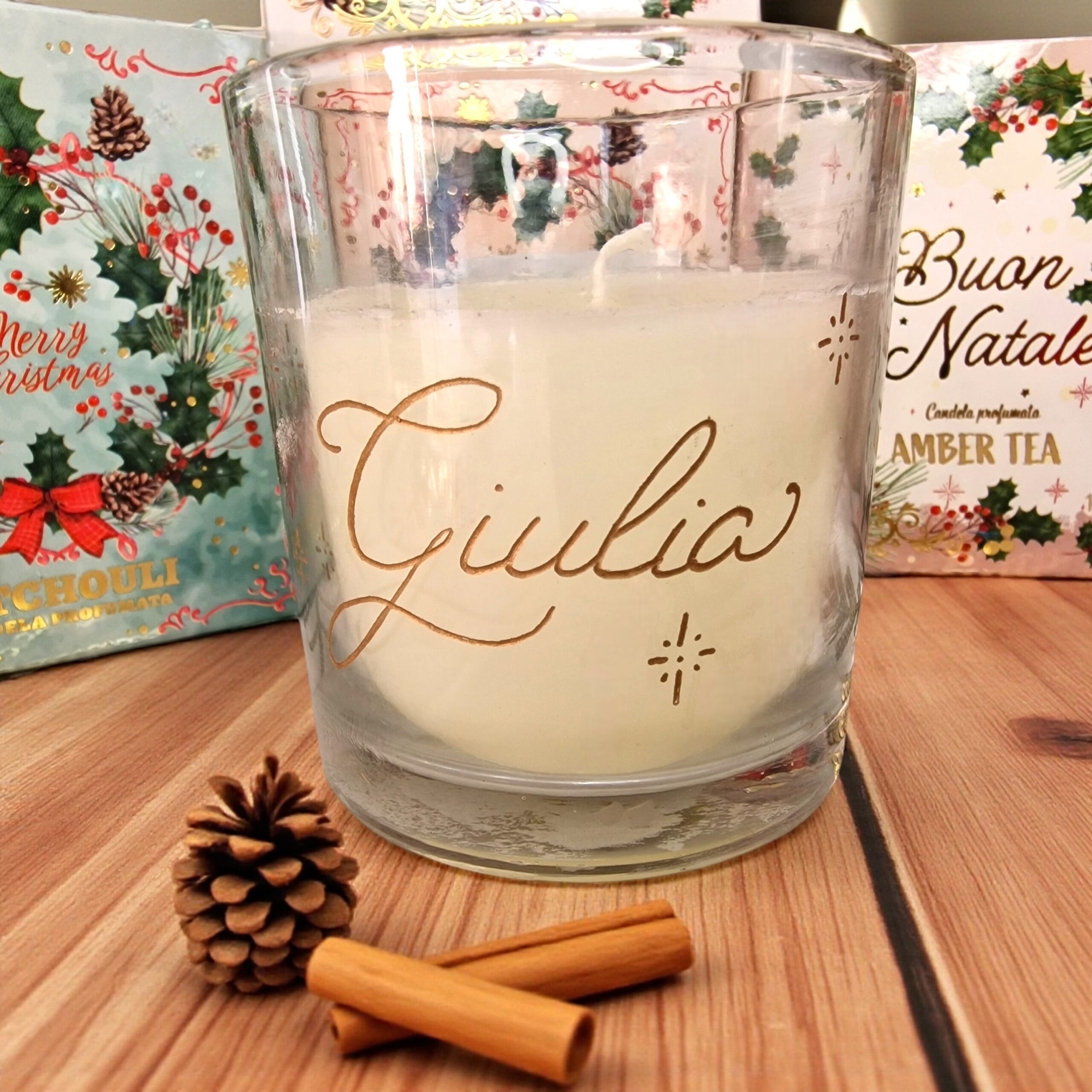 Una candela profumata e dal gusto raffinato, perfetta come regalo di Natale personalizzato.