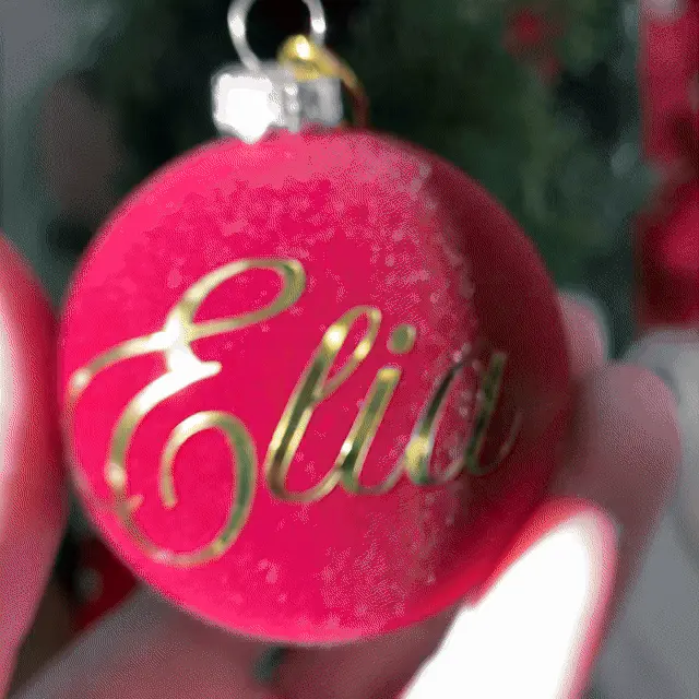 Puoi sceglierla incisa a mano, con il tratto riempito da una cera speciale per un finale pieno e brillante—oro o argento, a te la scelta—oppure con applicazione colorata, così puoi abbinarla alle tonalità del tuo albero (dal rosso classico ai metallici più moderni).