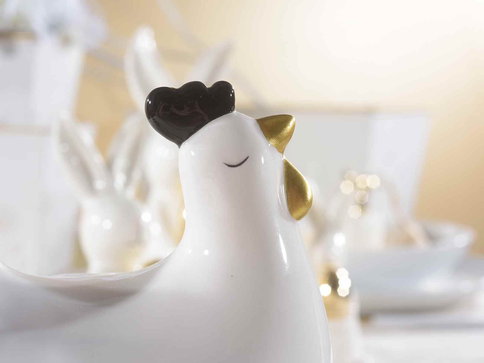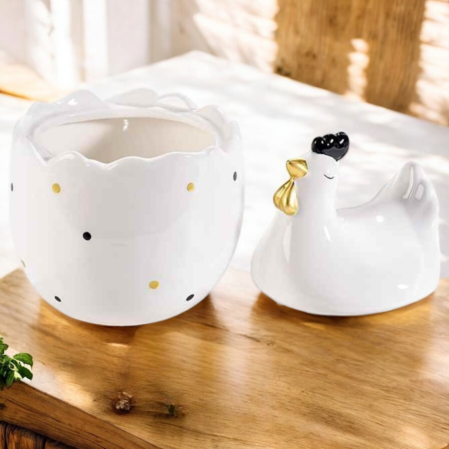 Barattolo/Biscottiera/Contenitore per alimenti portadolci a gallinella in ceramica con dettagli simil oro opaco