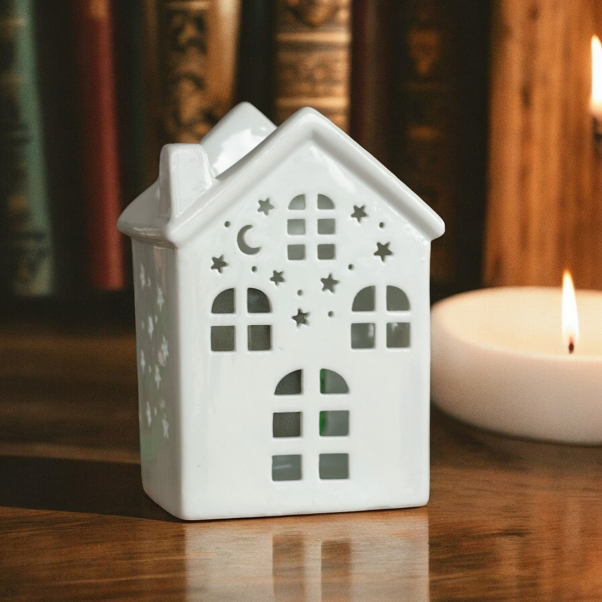 Il Brucia Essenze Calore di Casa aggiunge un tocco di comfort e serenità a qualsiasi ambiente, diffondendo nell’aria una fragranza a tua scelta. Realizzato in elegante ceramica bianca, questo diffusore è tanto decorativo quanto funzionale, fondendo bellezza e semplicità. La luce della candela, che filtra attraverso i suoi intagli, crea un’atmosfera calda e rilassante. Ideale per oli essenziali, cere profumate o granuli, trasformerà ogni stanza in un rifugio accogliente.