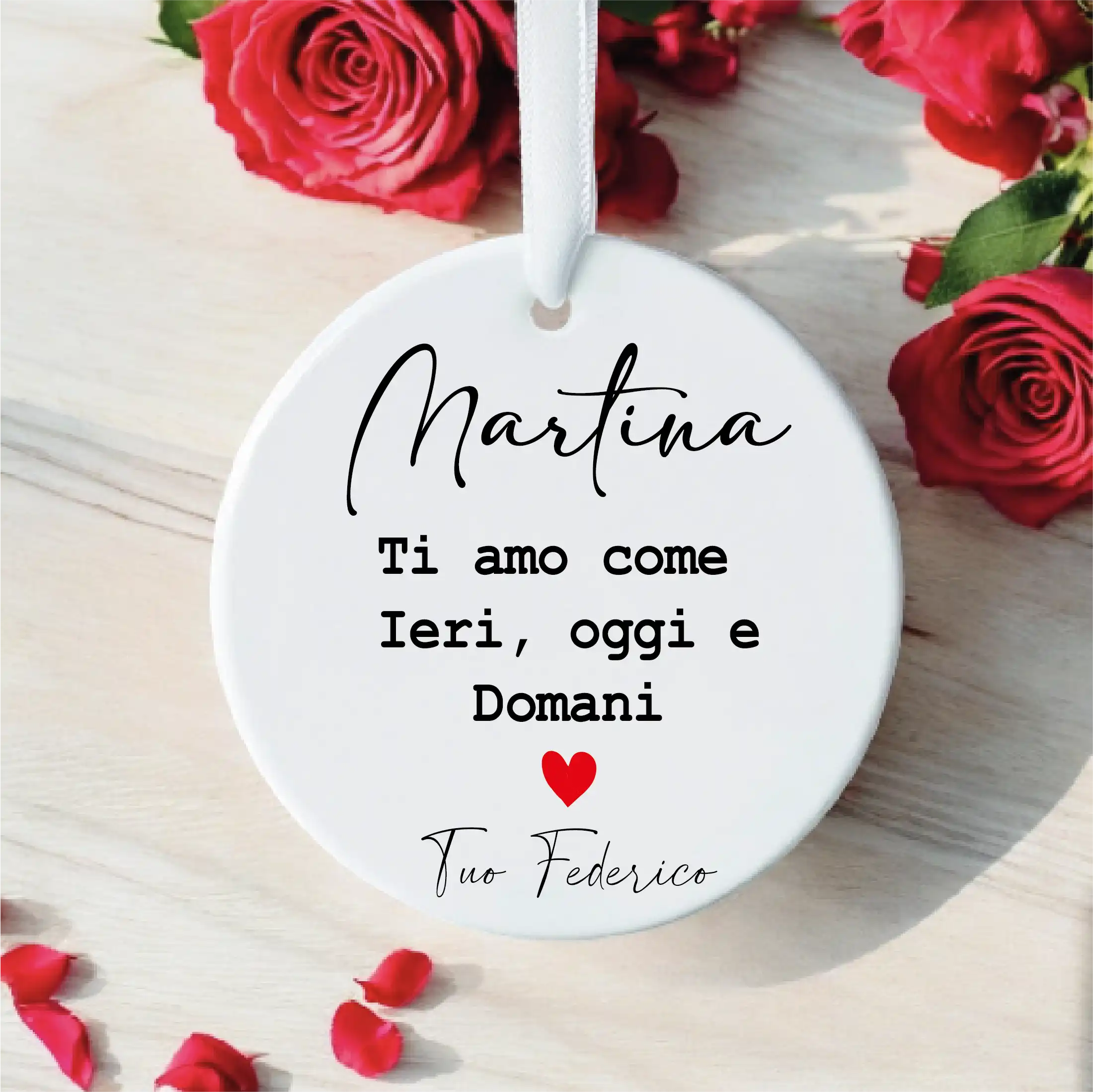 Questo ornamento personalizzato è un prezioso simbolo di affetto, amore e gratitudine, perfetto per San Valentino. Con il nome della persona cara in evidenza e una toccante dedica, è ideale per commemorare legami speciali e celebrare l’amore in tutte le sue forme. Decorato con eleganti motivi naturali, l’ornamento racchiude un messaggio personale e sentito, rendendolo un dono unico e indimenticabile per chiunque desideri esprimere amore, amicizia e riconoscenza in un modo semplice ma significativo. Ideale per occasioni speciali come San Valentino, questo ornamento diventerà un ricordo duraturo da conservare con affetto.