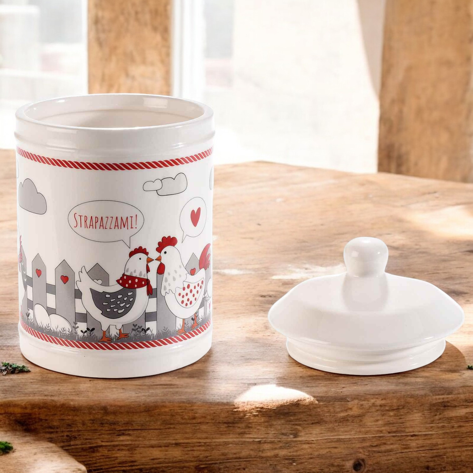 Poggiamestoli da cucina in ceramica decori rilievo “Gallinella” con fiocchetto a pois