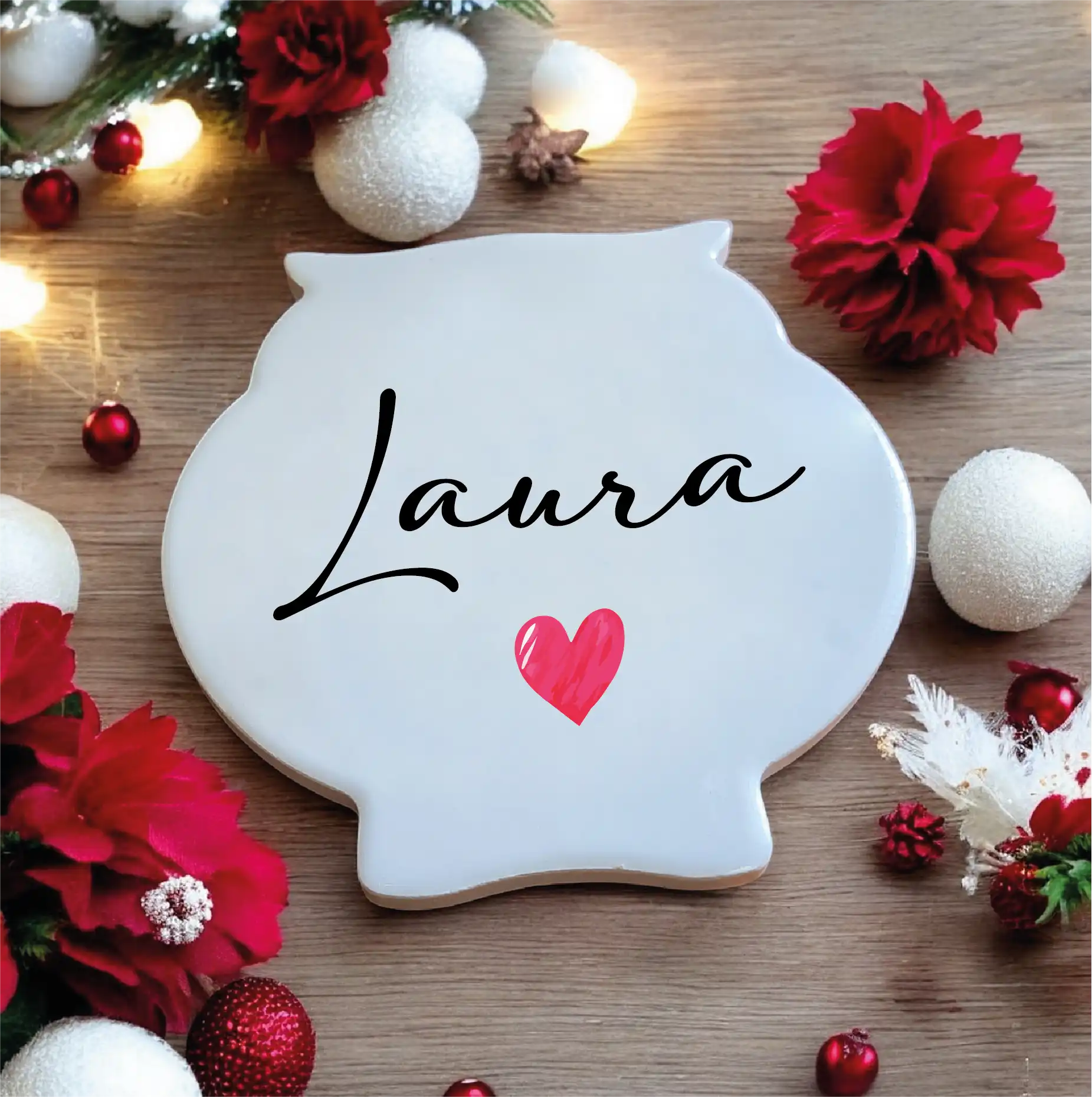 Ornamento in ceramica personalizzabile, ideale come regalo per nascita. Realizzato con una finitura lucida, può essere sublimato con l’immagine o il testo a tua scelta, rendendolo un ricordo unico e significativo. Perfetto per celebrare un giorno speciale con un tocco personale.