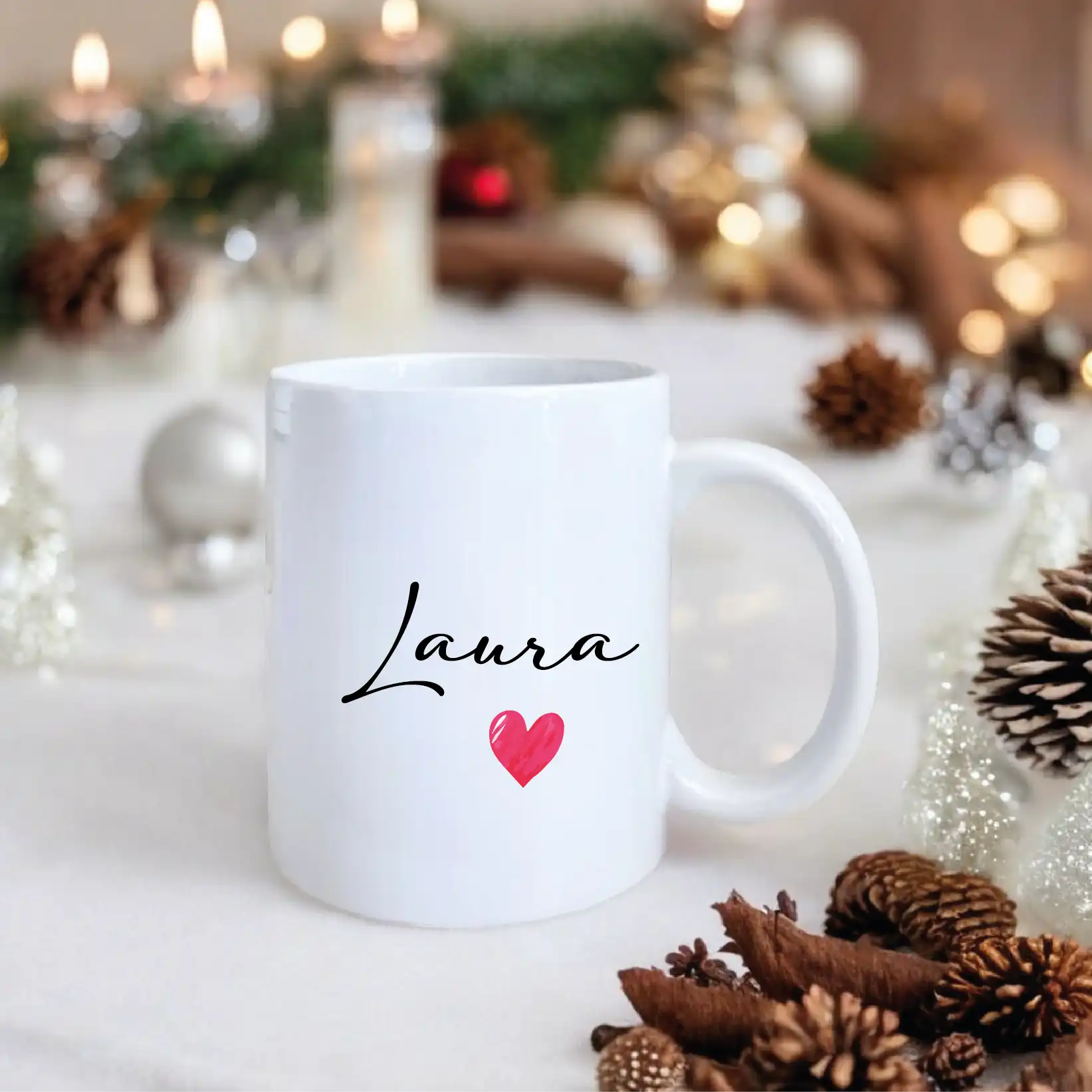 Tazza natalizia personalizzata con nome, perfetta per aggiungere un tocco festivo alle tue mattine invernali. Un regalo unico e caldo per celebrare il Natale con stile e allegria.