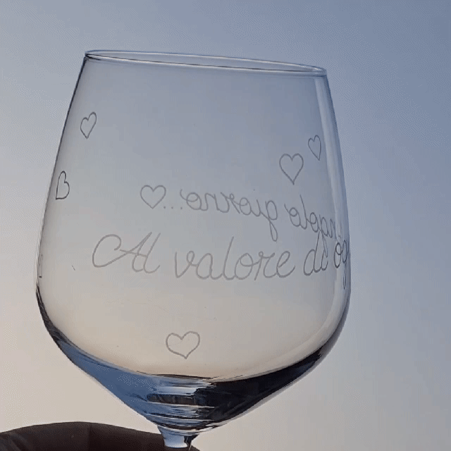 Un calice in vetro inciso a mano con un delicato motivo di cuori e la frase “Al valore di ogni singolo giorno”. Questo calice rappresenta un gesto simbolico e affettuoso, perfetto per celebrare l’importanza di vivere ogni giorno con amore e gratitudine. Ideale come regalo speciale per anniversari, compleanni o altre ricorrenze, è un pezzo unico che aggiunge un tocco di personalizzazione e significato a ogni brindisi.