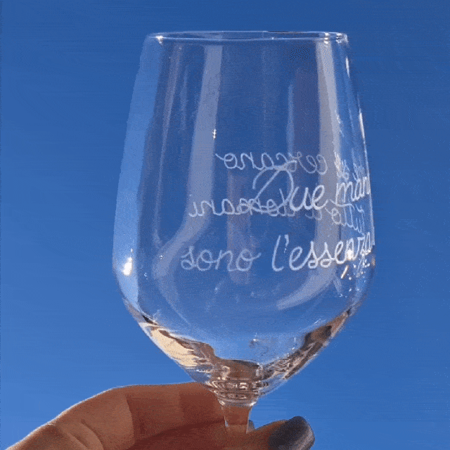 Questo calice in vetro, inciso a mano, è arricchito dalla poetica frase “Due mani che si cercano, sono l’essenza di tutto il domani” e, sulla base, è decorato con due mani che si tengono l’un l’altra, simbolo di un legame profondo e duraturo. Un regalo speciale che rappresenta la connessione tra due persone e la promessa di un futuro insieme. Perfetto per occasioni come anniversari, matrimoni o per chi desidera celebrare l’amore e la complicità con un oggetto unico e carico di significato.